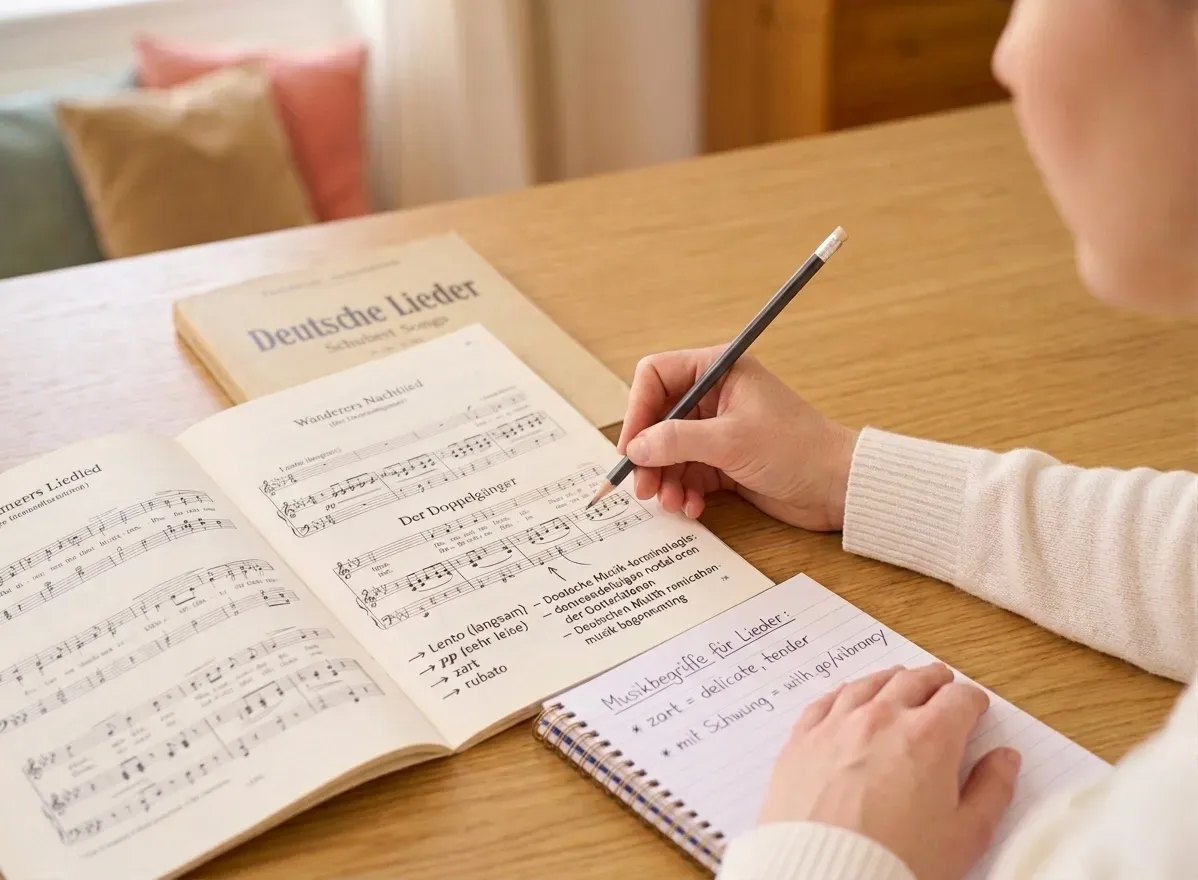 ドイツ語の基礎文法や日常会話に加え、音楽のレッスン現場で実際に使われる表現や専門用語を中心に学ぶことができます。海外の音楽大学やマスタークラスでは、語学学校で学ぶドイツ語とは少し違う、音楽特有の言い回しが多く使われます。